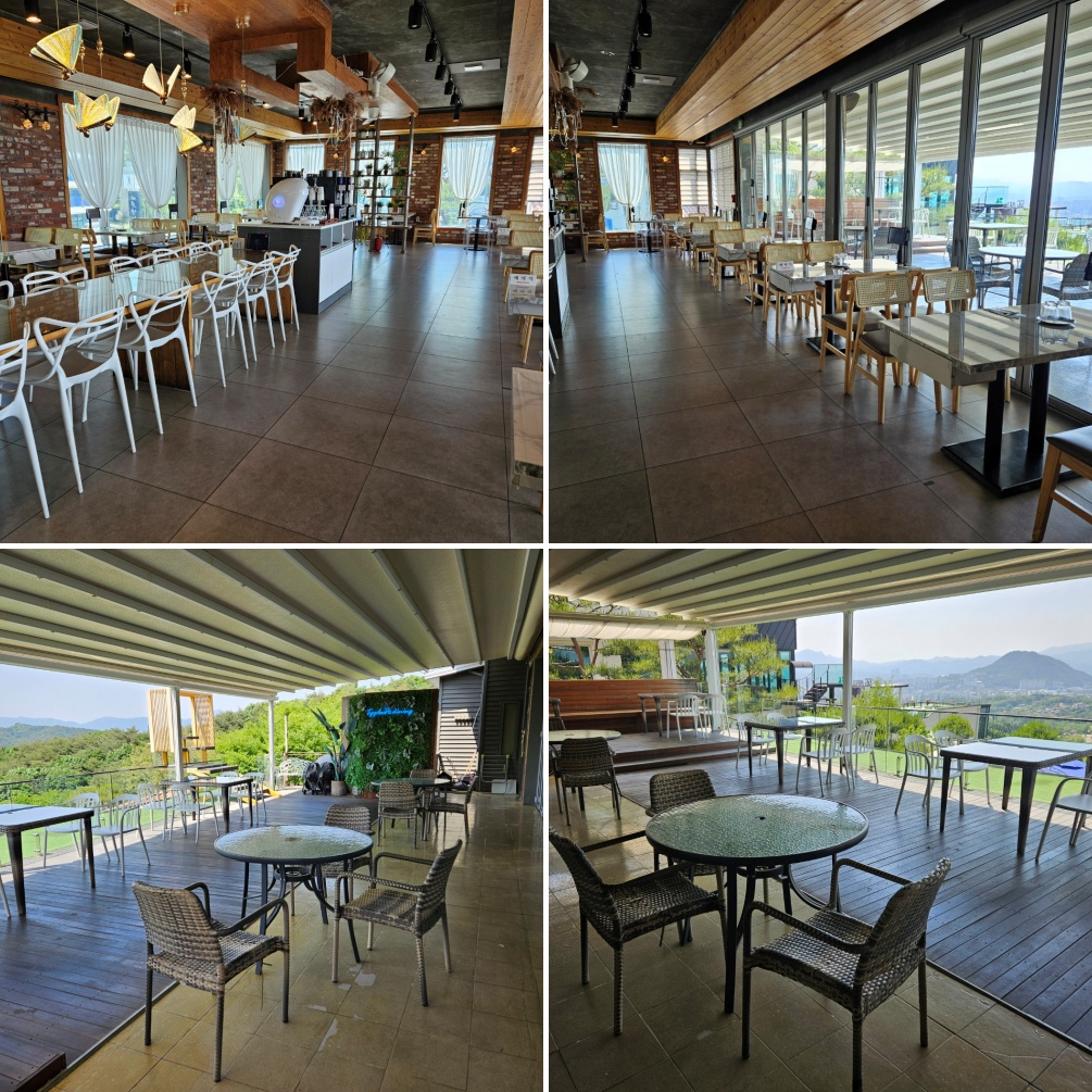 넓고 모던한 인테리어에 통창으로 들어오는 햇살과, 야외 테라스에서 볼 수 있는 탁 트인 경치 덕분에 식사 내내 기분이 좋아지는 곳이에요.