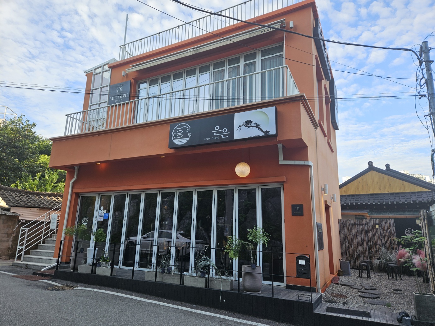 건물 외관은 통유리로 되어 있어 카페처럼 깔끔한 느낌이 나며, 따뜻한 주황색 외관이 인상적이예요.
