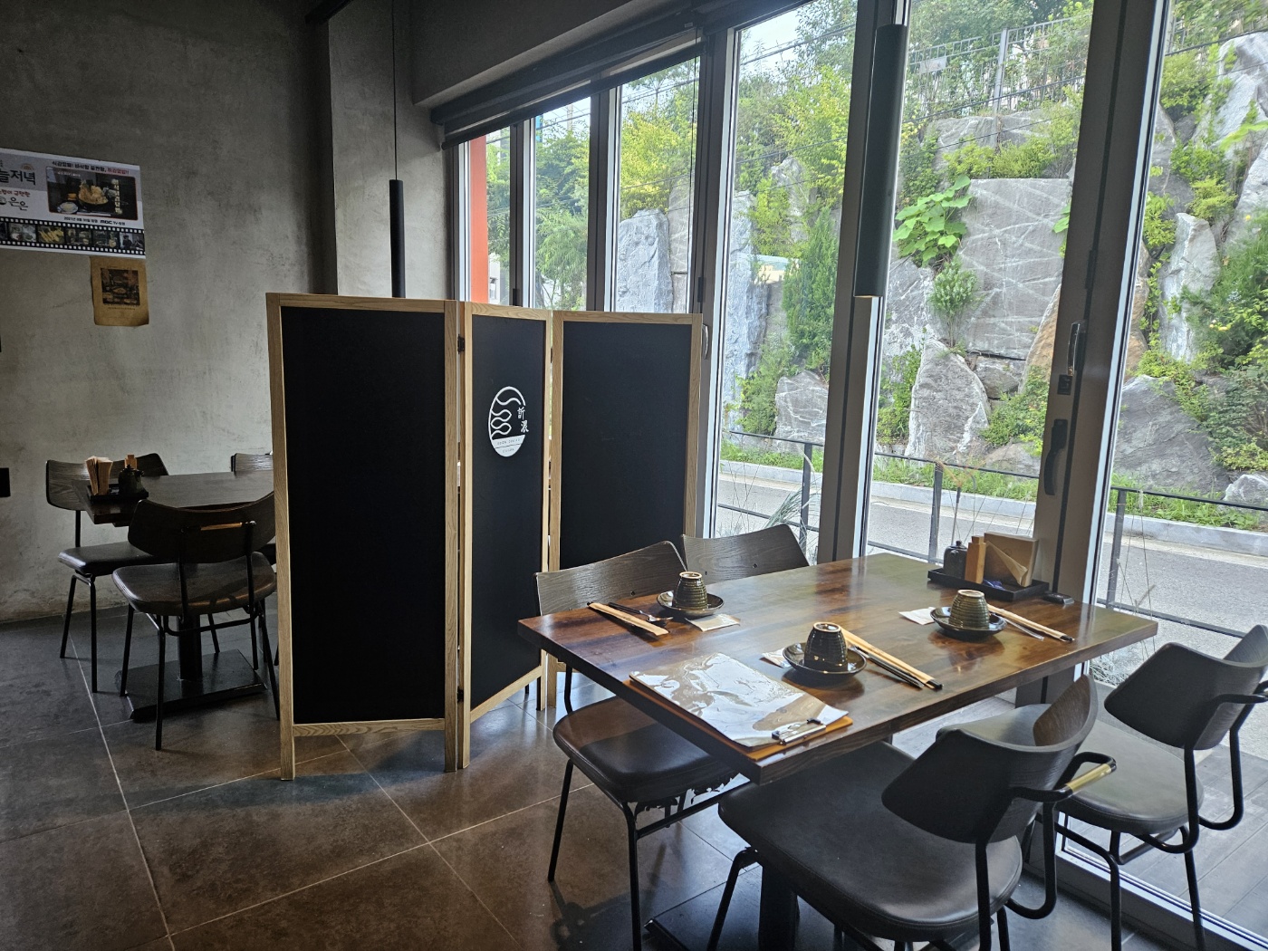 한적한 도로와 접해있는 통유리로 자연을 느끼며 여유로운 식사를 할 수 있고, 안쪽으로 프라이빗한 좌석이 마련되어 있습니다.